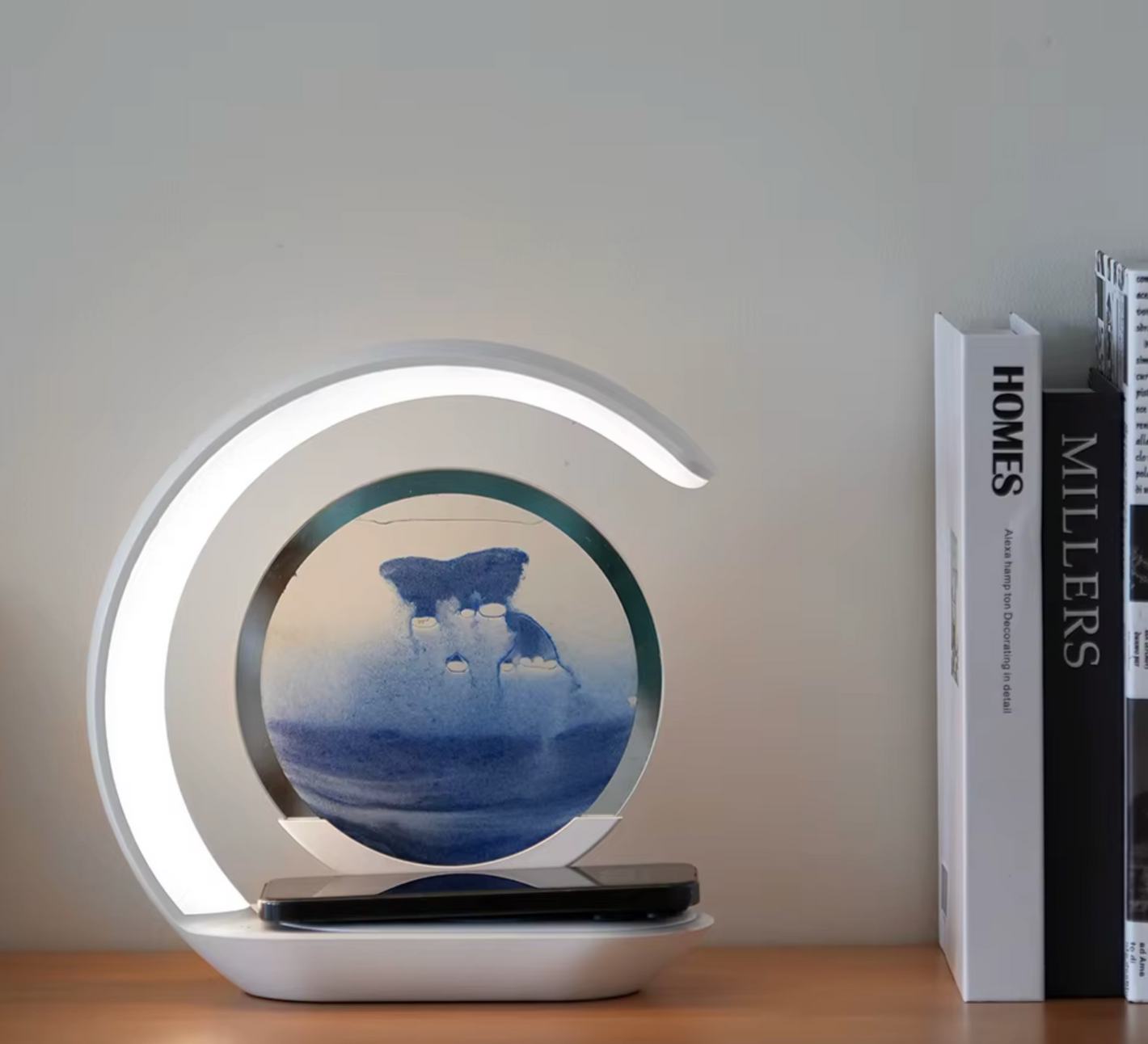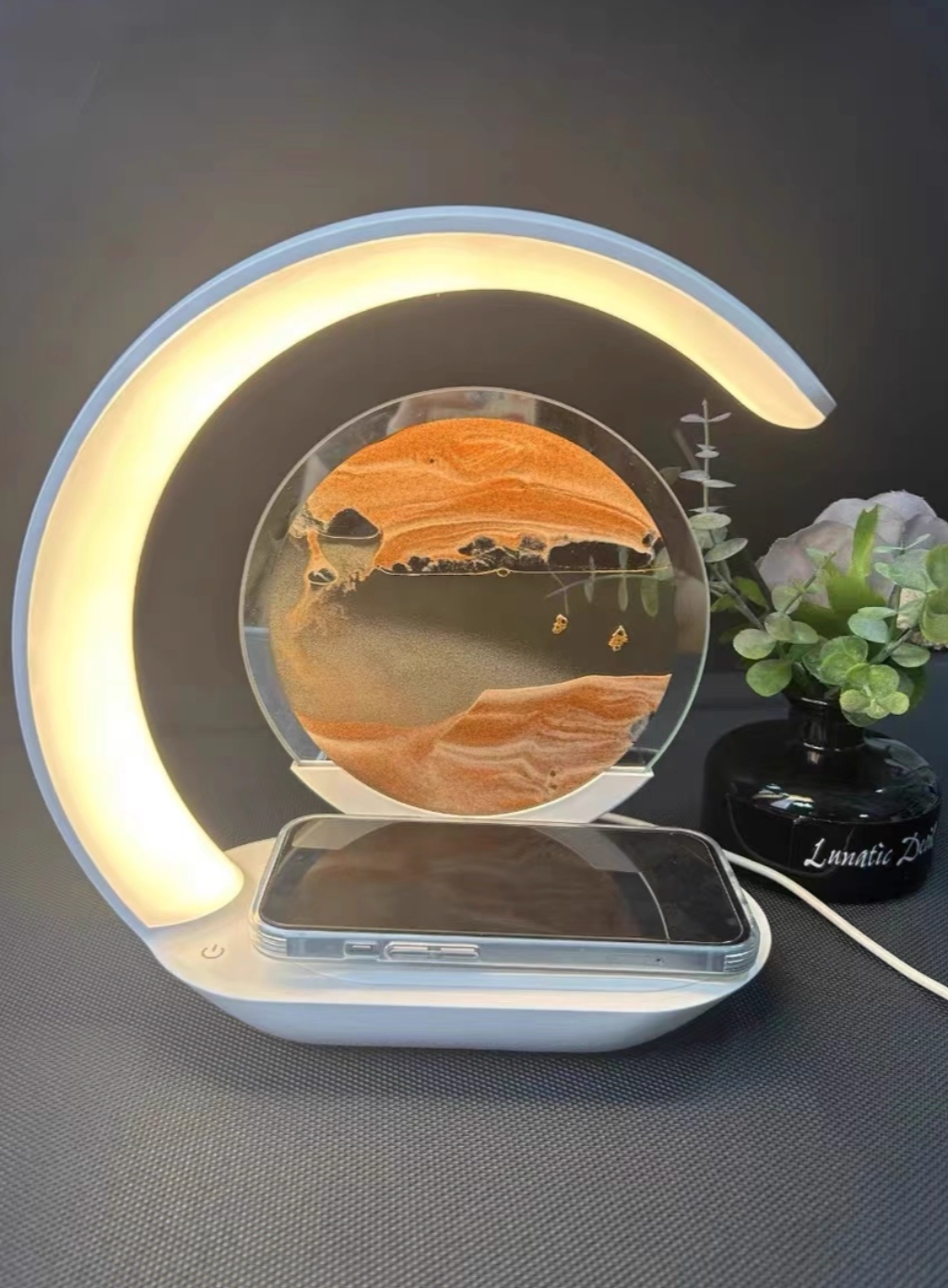 Geef je interieur een moderne en stijlvolle upgrade met LumaCharge, het unieke draadloze laadstation dat meer doet dan alleen opladen. Terwijl je smartphone draadloos wordt opgeladen, voorziet het zachte nachtlamplicht je kamer van een rustgevende sfeer. Het hypnotiserende drijfzand-effect voegt een speels en decoratief element toe, waardoor dit apparaat functionaliteit, design en ontspanning perfect combineert. Ideaal voor op je nachtkastje, bureau of als stijlvol cadeau.